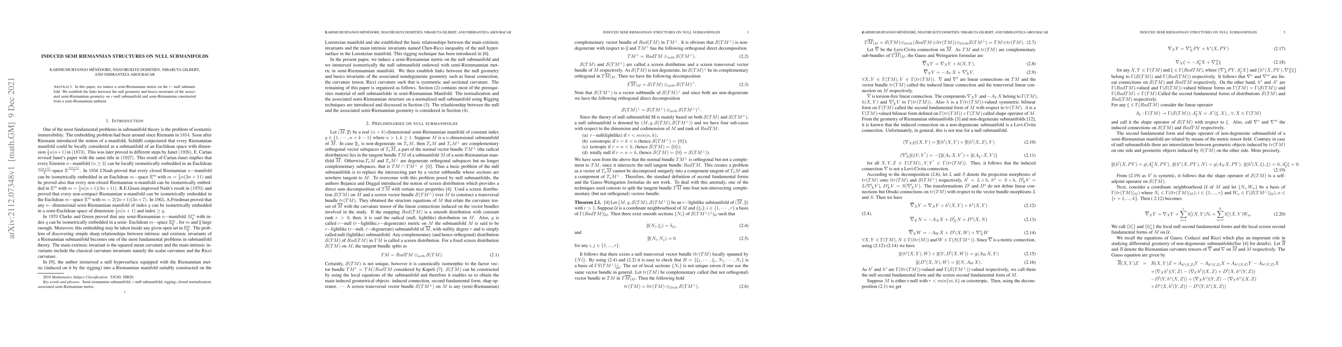 This paper induces a semi-Riemannian metric on $r$-null submanifolds, establishing connections between null geometry and the basic invariants of associated semi-Riemannian structures derived from an ambient semi-Riemannian space.