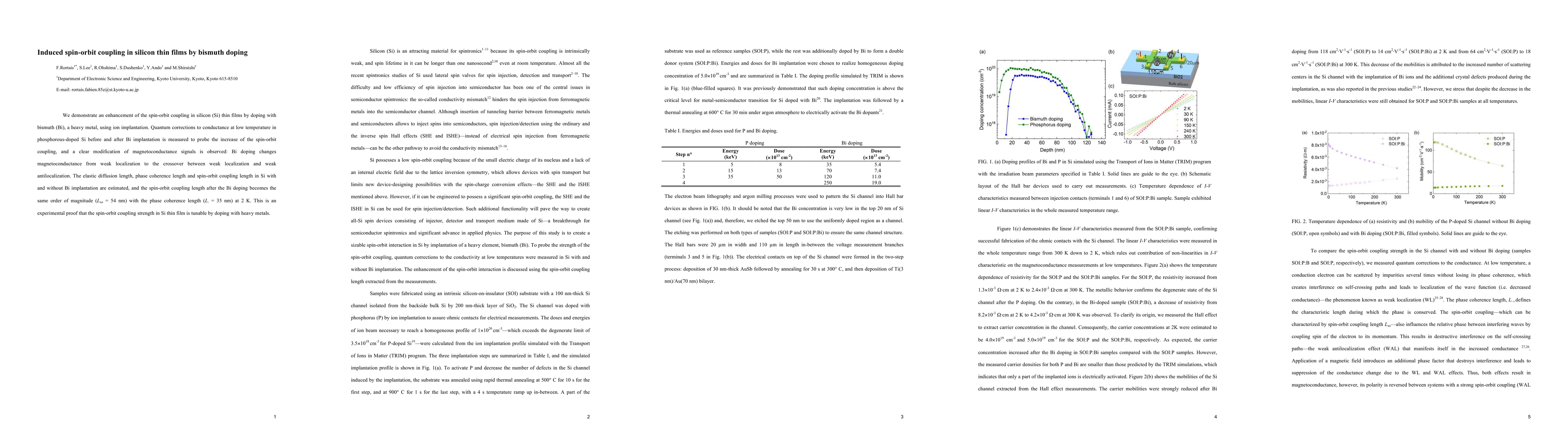 This paper demonstrates that bismuth doping via ion implantation enhances spin-orbit coupling in silicon thin films, evidenced by changes in magnetoconductance from weak localization to a crossover state. The spin-orbit coupling length becomes comparable to the phase coherence length, proving that spin-orbit coupling in silicon can be tuned through heavy metal doping.