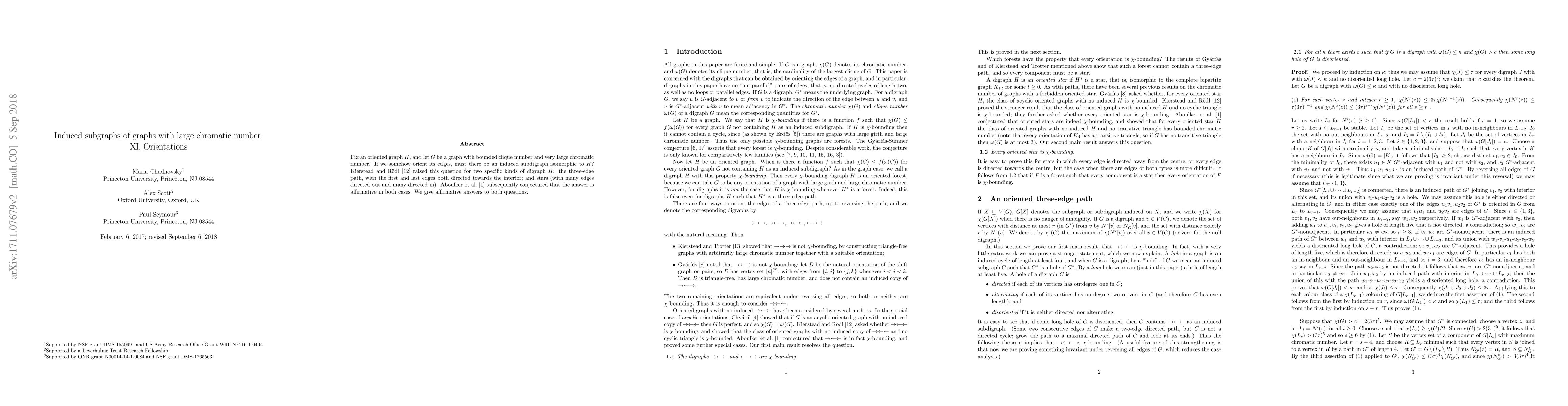 Researchers prove that for a large-chromatic-number graph with a bounded clique number, orienting its edges guarantees the existence of an induced subdigraph isomorphic to either a three-edge path or a star.