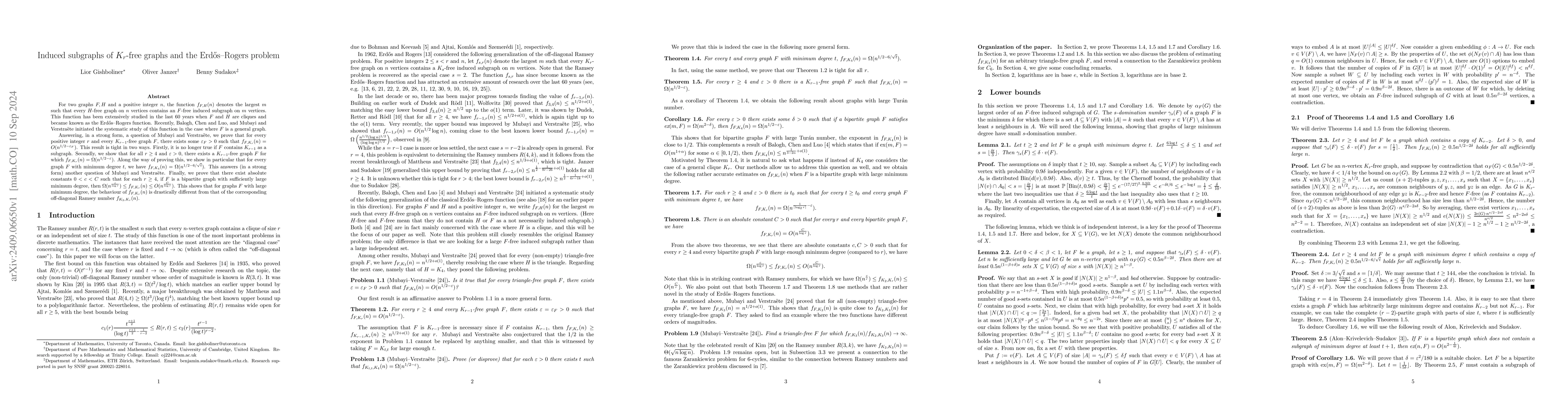 This paper investigates the function $f_{F,H}(n)$ related to the Erdős-Rogers problem, focusing on $K_r$-free graphs. It proves that for $K_{r-1}$-free graphs $F$, $f_{F,K_r}(n) = O(n^{1/2-\varepsilon_F})$, demonstrating tightness by showing it fails if $F$ contains $K_{r-1}$ and establishing a lower bound for specific $F$. Additionally, it establishes bounds for bipartite graphs $F$ with large minimum degree, contrasting their behavior with off-diagonal Ramsey numbers.