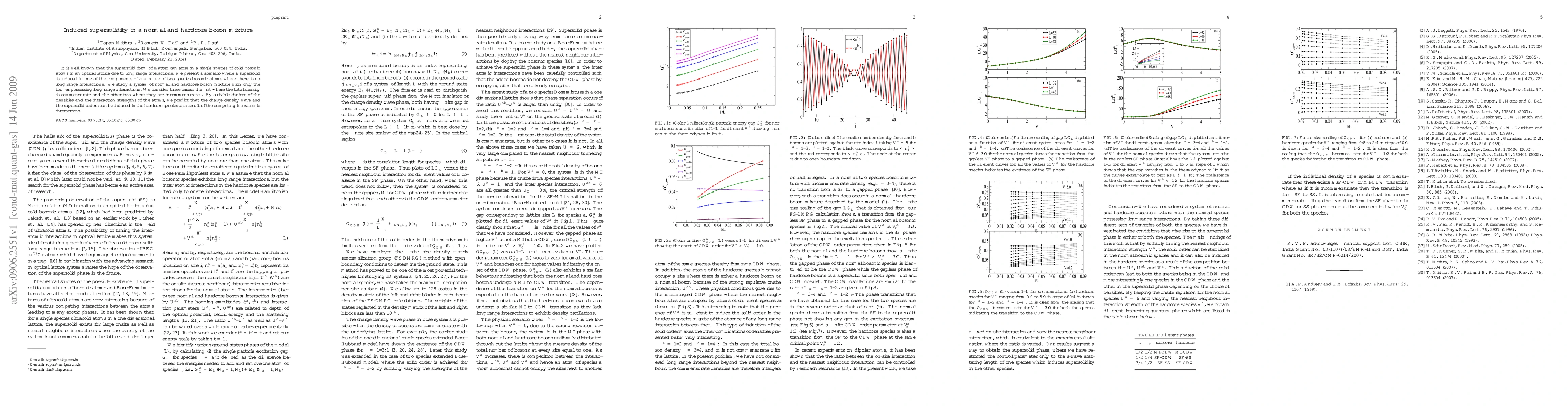 It is well known that the supersolid form of matter can arise in a single species of cold bosonic atoms in an optical lattice due to long range interactions. We present a scenario where a supersolid is induced in one of the components of a mixture of two species bosonic atoms where there is no long range interactions. We study a system of normal and hardcore boson mixture with only the former possessing long range interactions. We consider three cases: the first where the total density is commensurate and the other two where they are incommensurate . By suitable choices of the densities and the interaction strengths of the atoms, we predict that the charge density wave and the supersolid orders can be induced in the hardcore species as a result of the competing interatomic interactions.