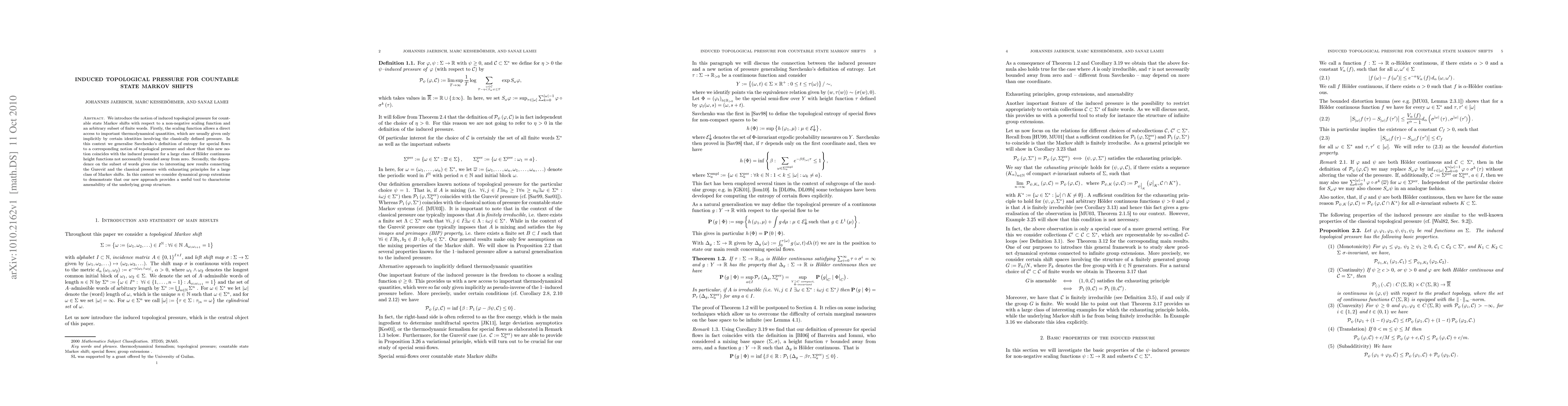 We introduce the notion of induced topological pressure for countable state Markov shifts with respect to a non-negative scaling function and an arbitrary subset of finite words. Firstly, the scaling function allows a direct access to important thermodynamical quantities, which are usually given only implicitly by certain identities involving the classically defined pressure. In this context we generalise Savchenko's definition of entropy for special flows to a corresponding notion of topological pressure and show that this new notion coincides with the induced pressure for a large class of H\"older continuous height functions not necessarily bounded away from zero. Secondly, the dependence on the subset of words gives rise to interesting new results connecting the Gurevi{\vc} and the classical pressure with exhausting principles for a large class of Markov shifts. In this context we consider dynamical group extentions to demonstrate that our new approach provides a useful tool to characterise amenability of the underlying group structure.