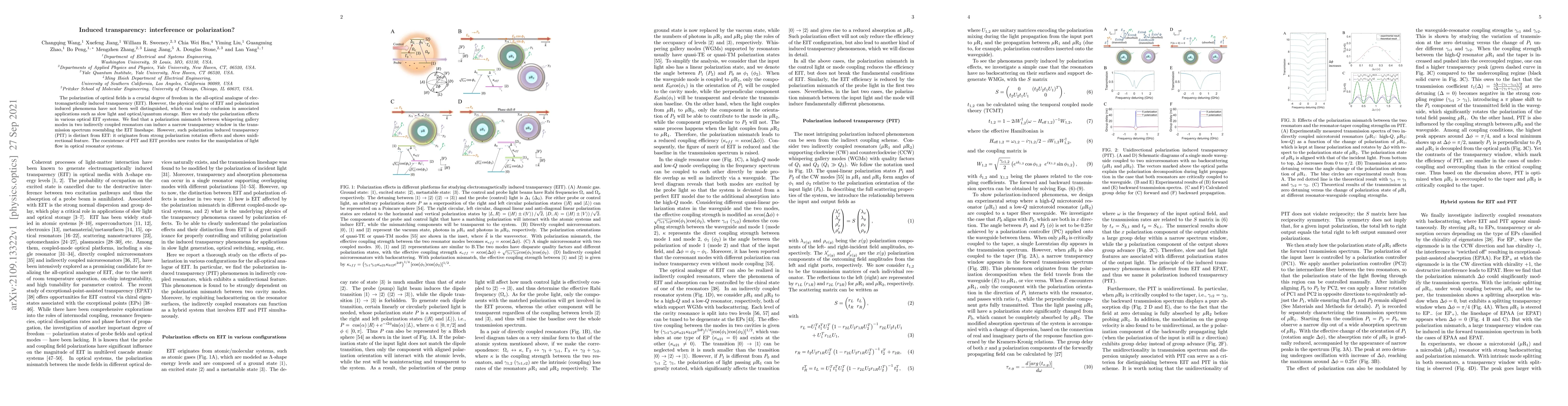 The polarization of optical fields is a crucial degree of freedom in the all-optical analogue of electromagnetically induced transparency (EIT). However, the physical origins of EIT and polarization induced phenomena have not been well distinguished, which can lead to confusion in associated applications such as slow light and optical/quantum storage. Here we study the polarization effects in various optical EIT systems. We find that a polarization mismatch between whispering gallery modes in two indirectly coupled resonators can induce a narrow transparency window in the transmission spectrum resembling the EIT lineshape. However, such polarization induced transparency (PIT) is distinct from EIT: it originates from strong polarization rotation effects and shows unidirectional feature. The coexistence of PIT and EIT provides new routes for the manipulation of light flow in optical resonator systems.