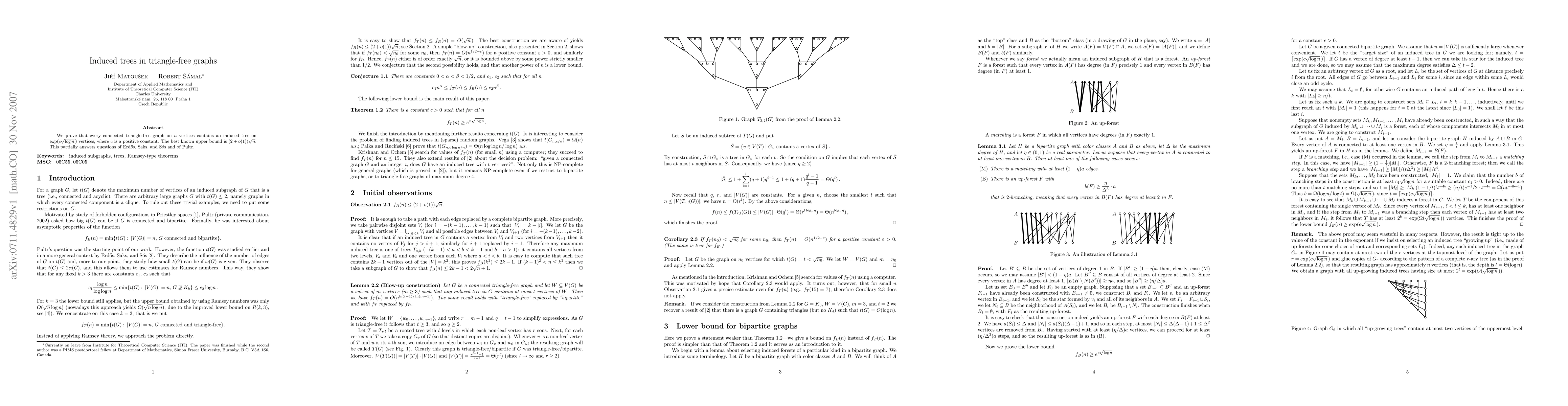 Researchers prove that triangle-free graphs contain induced trees of a certain size, improving previous bounds for such graphs.