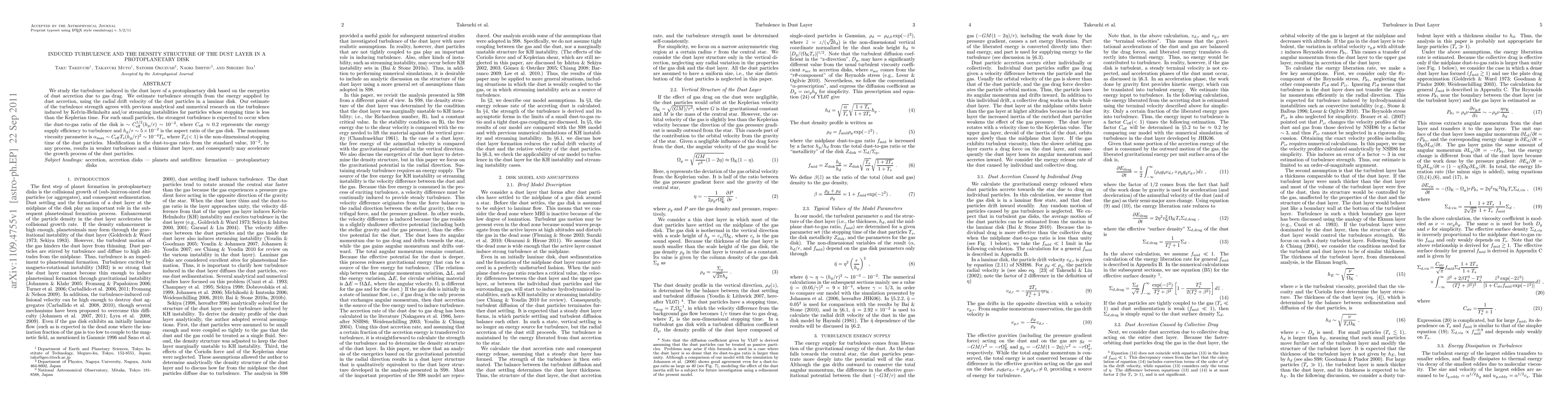 This paper investigates turbulence induced in the dust layer of a protoplanetary disk through the energetics of dust accretion due to gas drag. The study finds that the turbulence strength correlates with the dust-to-gas ratio, with the strongest turbulence occurring when the ratio is approximately 10^(-2), leading to a maximum viscosity parameter of alpha_max ~ 10^(-4) T_s.