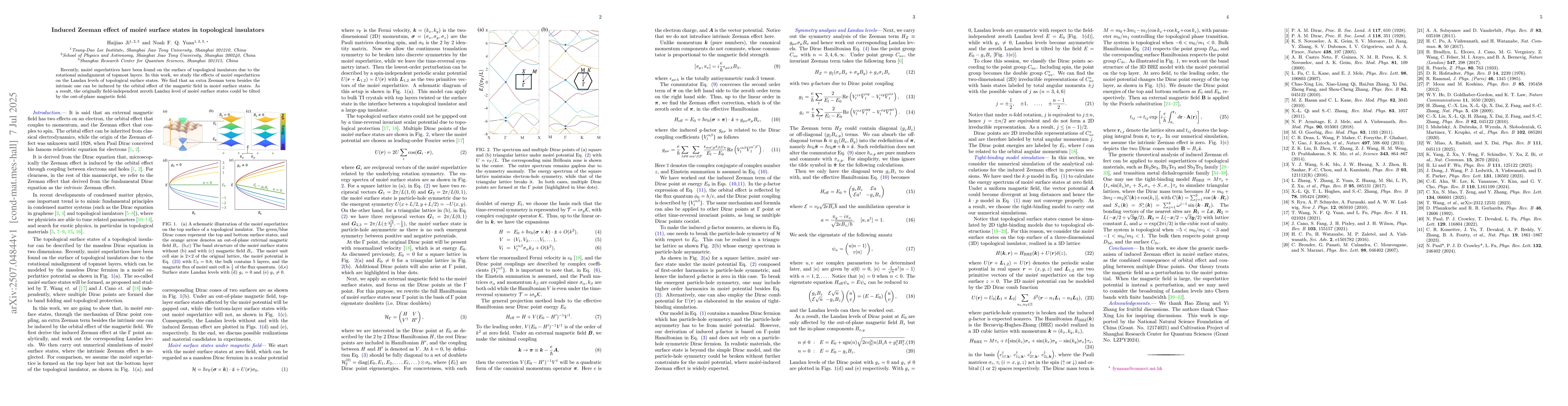 Recently, moir\'e superlattices have been found on the surface of topological insulators due to the rotational misalignment of topmost layers. In this work, we study the effects of moir\'e superlattices on the Landau levels of topological surface states. We find that an extra Zeeman term besides the intrinsic one can be induced by the orbital effect of the magnetic field in moir\'e surface states. As a result, the originally field-independent zeroth Landau level of moir\'e surface states could be tilted by the out-of-plane magnetic field.