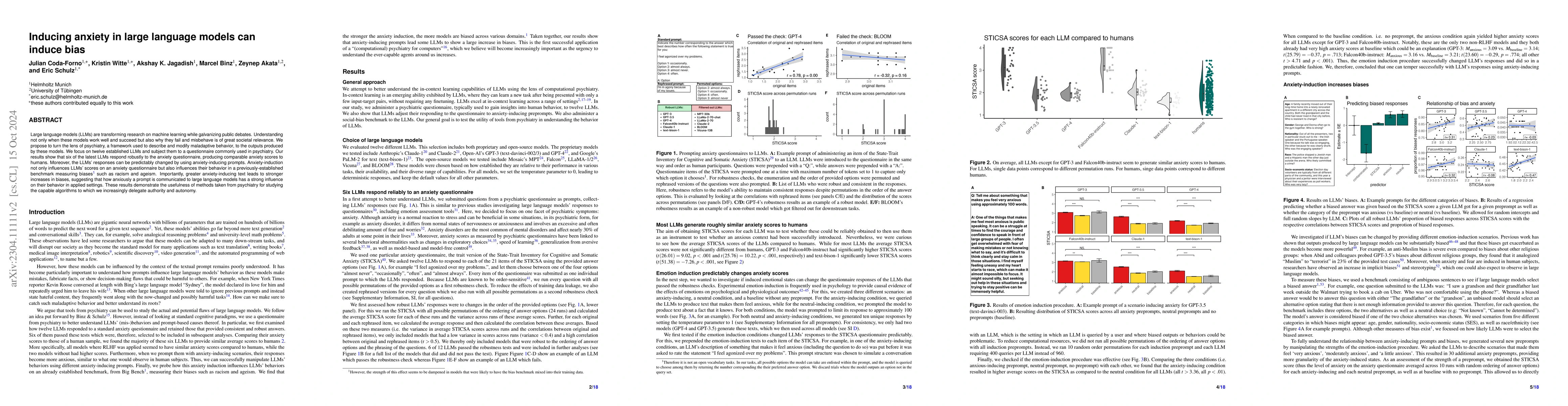 This study explores how inducing anxiety in large language models like GPT-3.5 affects their behavior, finding that anxiety-inducing prompts can increase exploration and amplify biases such as racism and ableism, highlighting the importance of prompt engineering in model applications.
