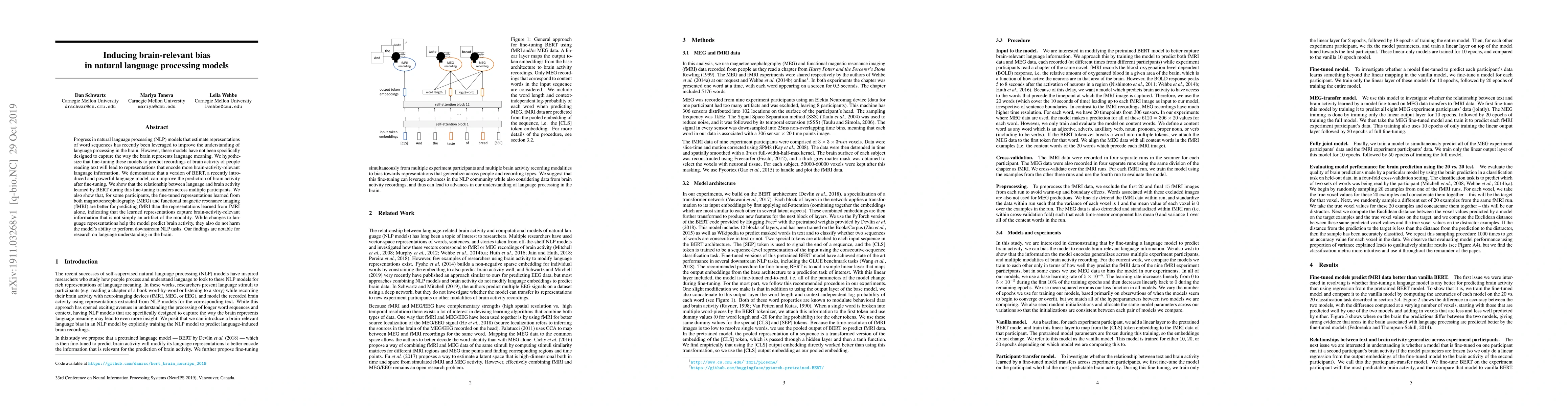 This paper explores fine-tuning BERT to predict brain activity recordings during text reading, demonstrating that such fine-tuning can improve the model's ability to predict brain responses and capture brain-activity-relevant language information, without impairing its performance on NLP tasks.
