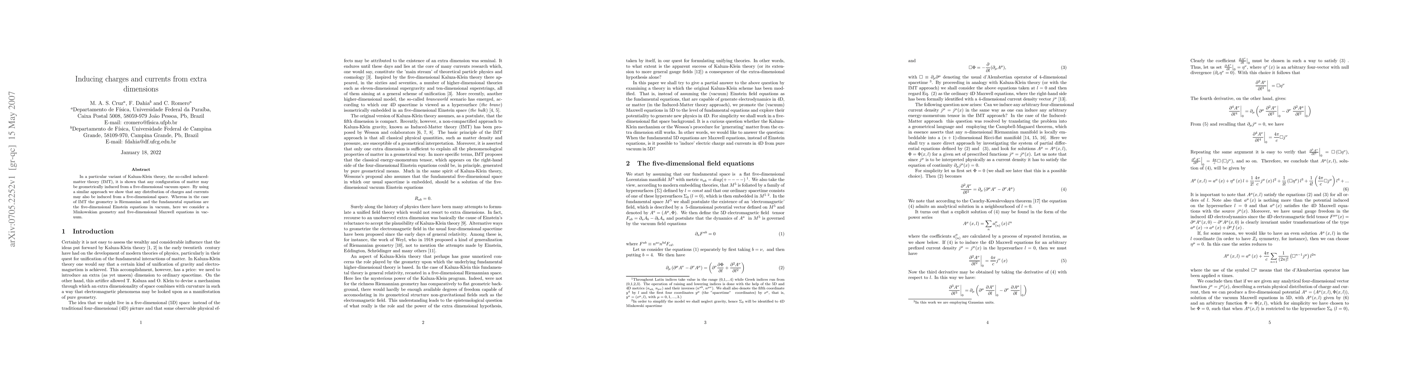In a particular variant of Kaluza-Klein theory, the so-called induced-matter theory (IMT), it is shown that any configuration of matter may be geometrically induced from a five-dimensional vacuum space. By using a similar approach we show that any distribution of charges and currents may also be induced from a five-dimensional vacuum space. Whereas in the case of IMT the geometry is Riemannian and the fundamental equations are the five-dimensional Einstein equations in vacuum, here we consider a Minkowskian geometry and the five-dimensional Maxwell equations in vacuum.