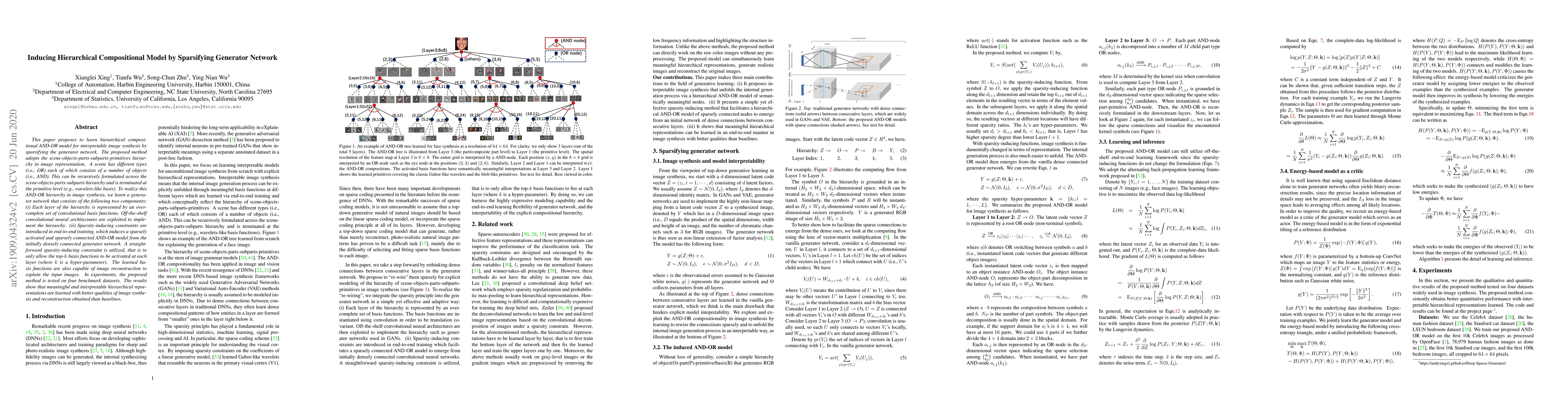 This paper proposes a method to learn a hierarchical compositional AND-OR model for interpretable image synthesis by sparsifying the generator network. The method induces a sparsely activated AND-OR model through sparsity-inducing constraints, achieving better image synthesis and reconstruction qualities compared to baselines.