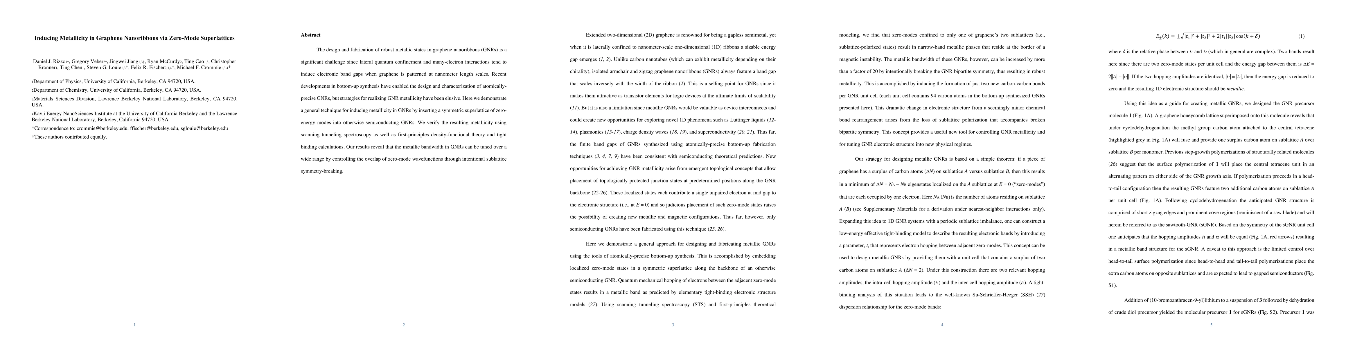 The research demonstrates the design and fabrication of metallic states in graphene nanoribbons (GNRs) by inserting a symmetric superlattice of zero-energy modes into otherwise semiconducting GNRs, verified through scanning tunneling spectroscopy and first-principles density-functional theory (DFT) and tight-binding calculations.