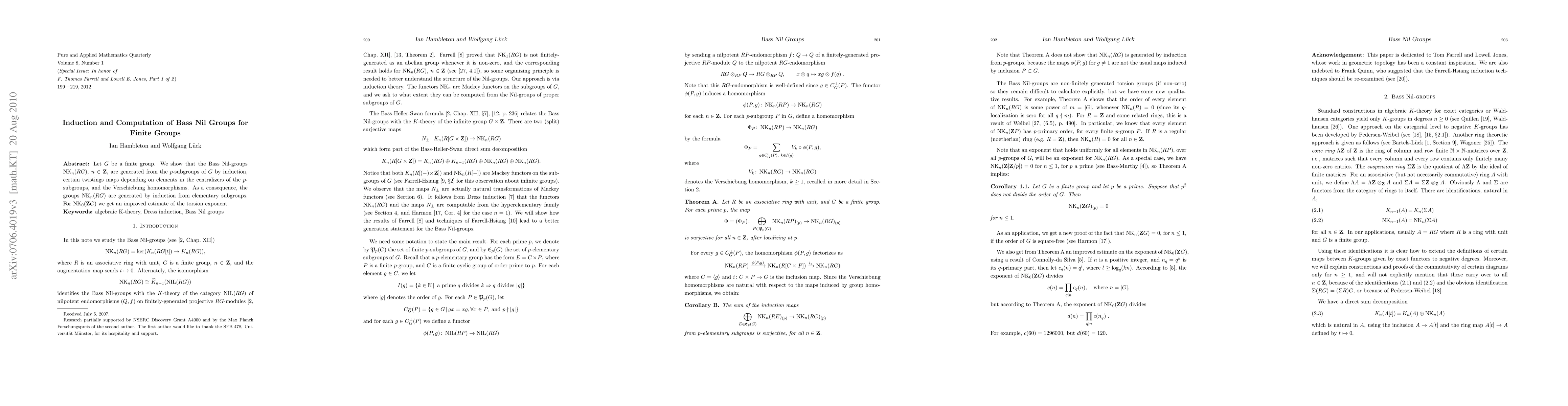 This paper demonstrates that the Bass Nil-groups $NK_n(RG)$ for a finite group $G$ are generated by induction from $p$-subgroups, twisting maps, and Verschiebung homomorphisms, leading to an improved estimate for the torsion exponent of $NK_0(ZG)$.