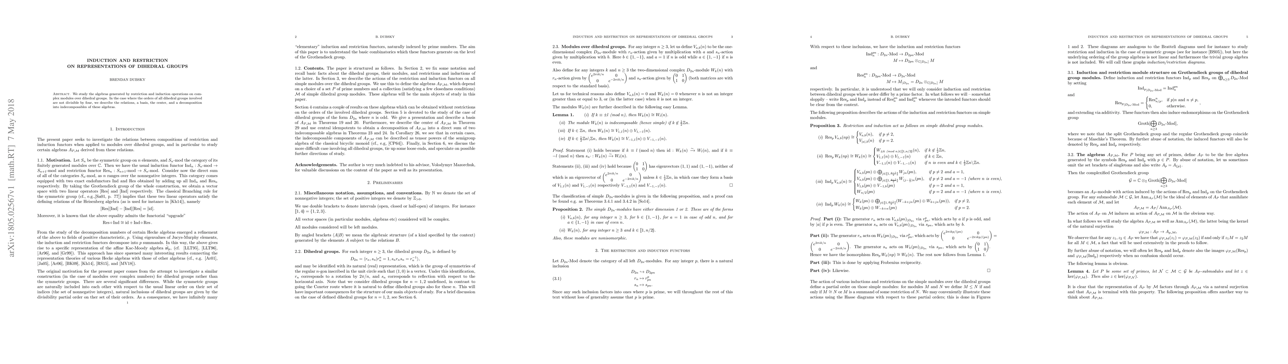 Researchers studied algebraic properties of dihedral groups, describing relations, centers, and decompositions of induced modules in specific cases. Their findings provide new insights into the representation theory of these groups.
