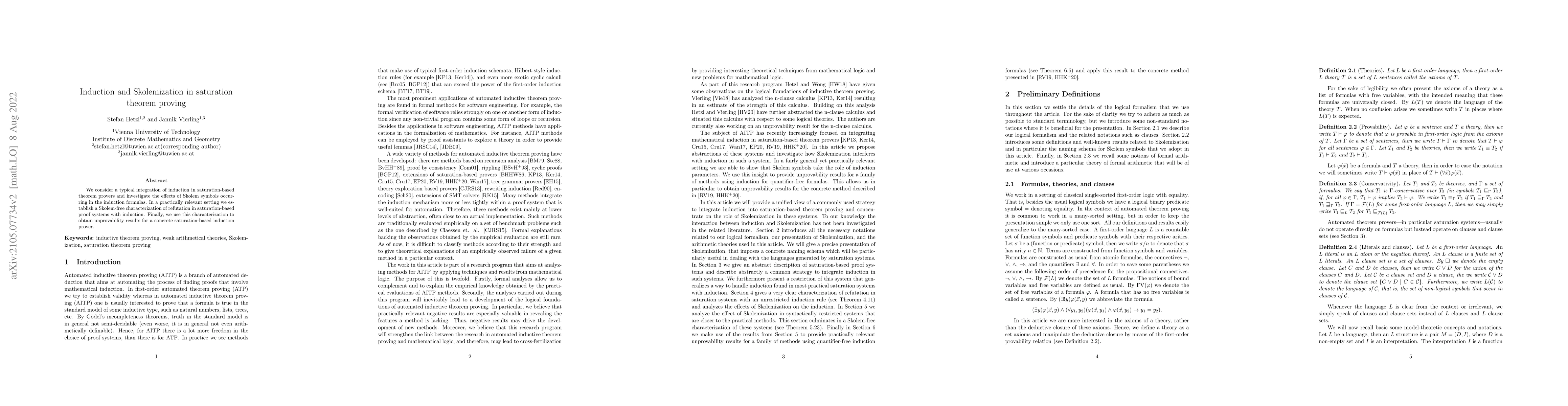 This paper explores the integration of induction in saturation-based theorem provers, focusing on the impact of Skolem symbols in induction formulas. It establishes a Skolem-free refutation characterization and uses it to derive unprovability results for a specific saturation-based induction prover.