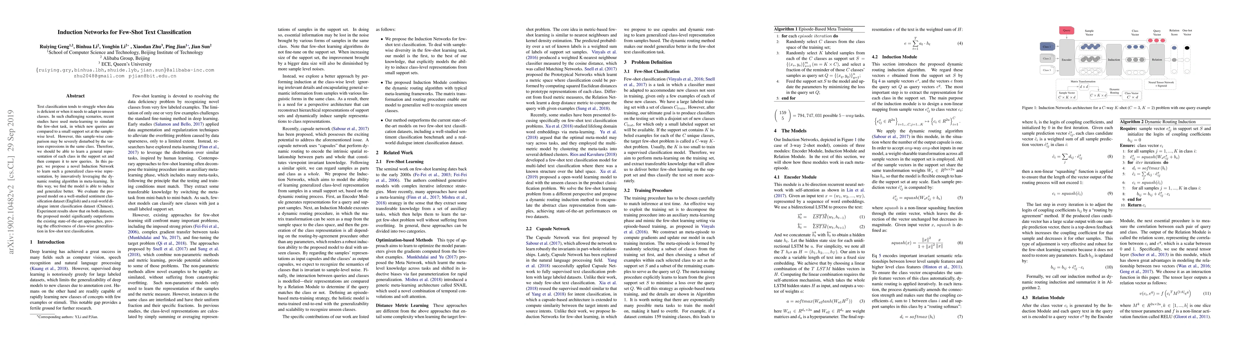 The Induction Networks introduce a novel approach to few-shot text classification by employing a dynamic routing algorithm within a meta-learning framework to learn class-wise representations from support sets, improving generalization to unseen classes.