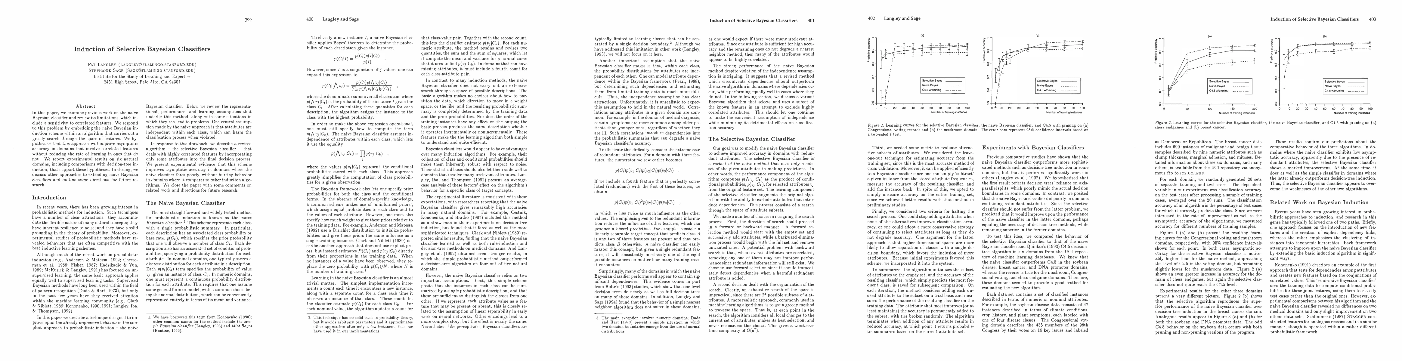 In this paper, we examine previous work on the naive Bayesian classifier and review its limitations, which include a sensitivity to correlated features. We respond to this problem by embedding the naive Bayesian induction scheme within an algorithm that c arries out a greedy search through the space of features. We hypothesize that this approach will improve asymptotic accuracy in domains that involve correlated features without reducing the rate of learning in ones that do not. We report experimental results on six natural domains, including comparisons with decision-tree induction, that support these hypotheses. In closing, we discuss other approaches to extending naive Bayesian classifiers and outline some directions for future research.