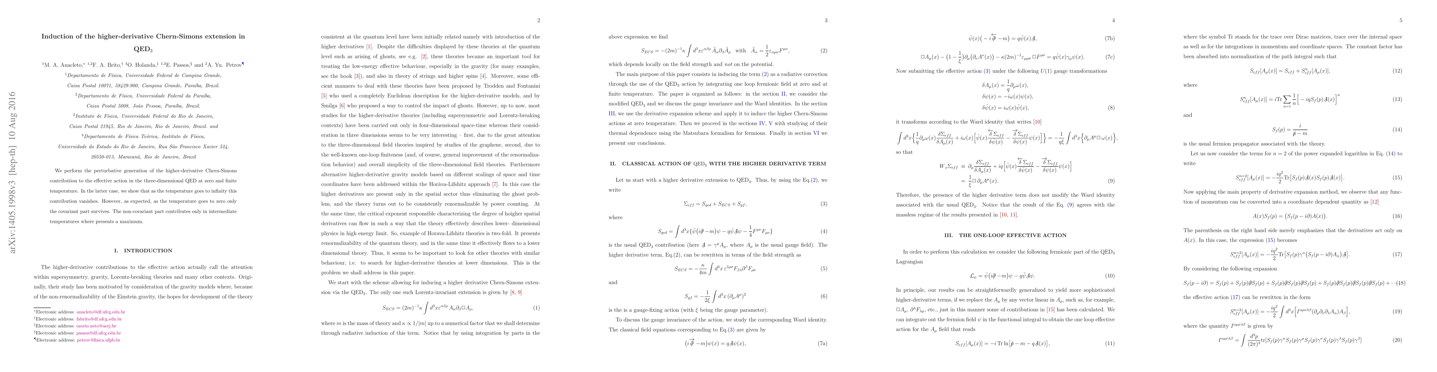 We perform the perturbative generation of the higher-derivative Chern-Simons contribution to the effective action in the three-dimensional QED at zero and finite temperature. In the latter case, we show that as the temperature goes to infinity this contribution vanishes. However, as expected, as the temperature goes to zero only the covariant part survives. The non-covariant part contributes only in intermediate temperatures where presents a maximum.