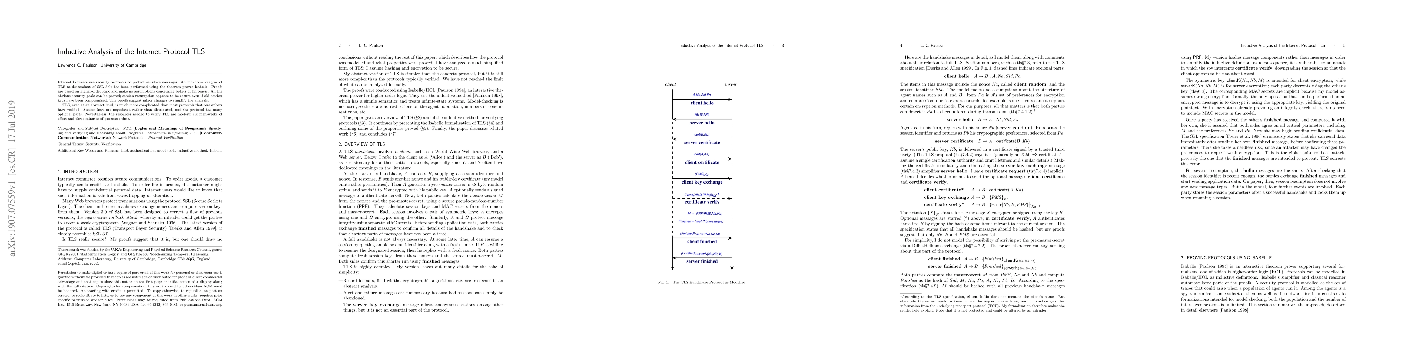 This paper presents an inductive analysis of the Internet Protocol TLS using the theorem prover Isabelle, demonstrating that all major security goals can be proved without assumptions. The analysis suggests minor simplifications and highlights the complexity of TLS, yet the verification required only six man-weeks of effort and three minutes of processor time.