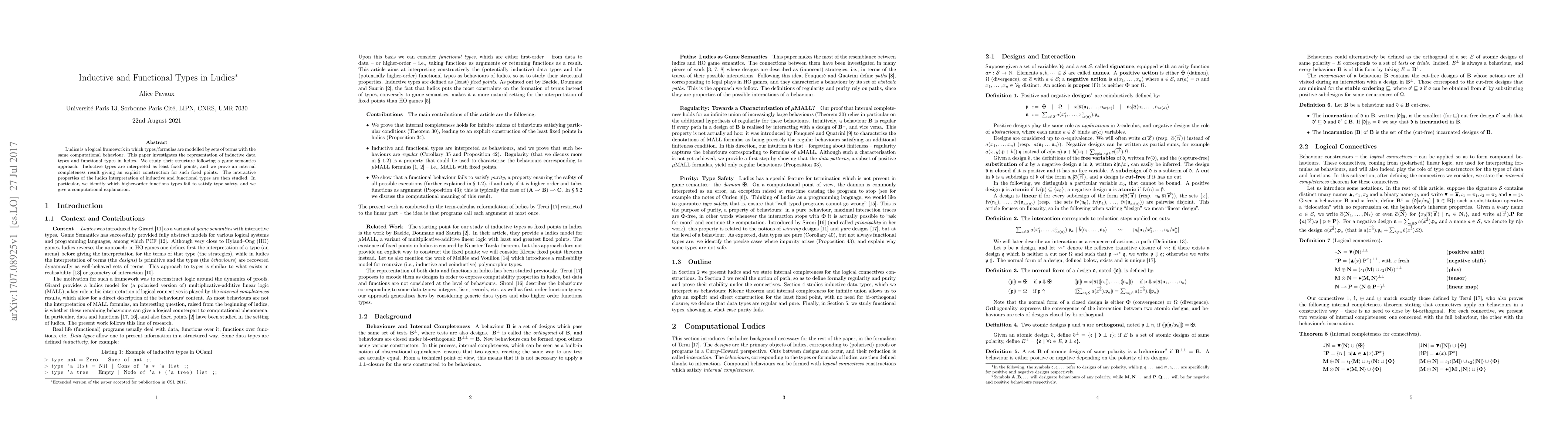 This paper explores the representation of inductive and functional types within the Ludics framework, using game semantics to interpret these types as least fixed points and demonstrating internal completeness. It also examines the interactive properties and identifies which higher-order functions compromise type safety, providing a computational explanation.