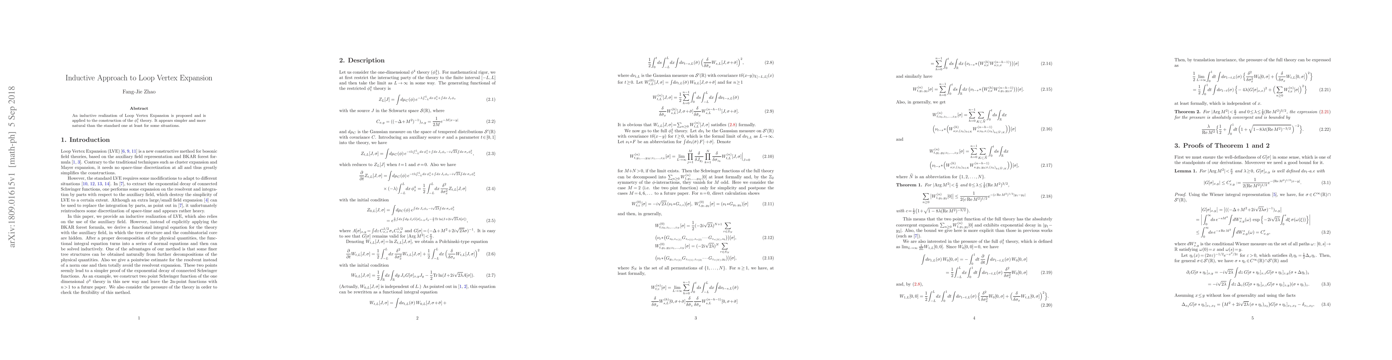Summary: This paper proposes an inductive method for Loop Vertex Expansion, demonstrating its application in constructing the $\phi_1^4$ theory, which is shown to be more straightforward and natural compared to the standard approach in certain contexts.