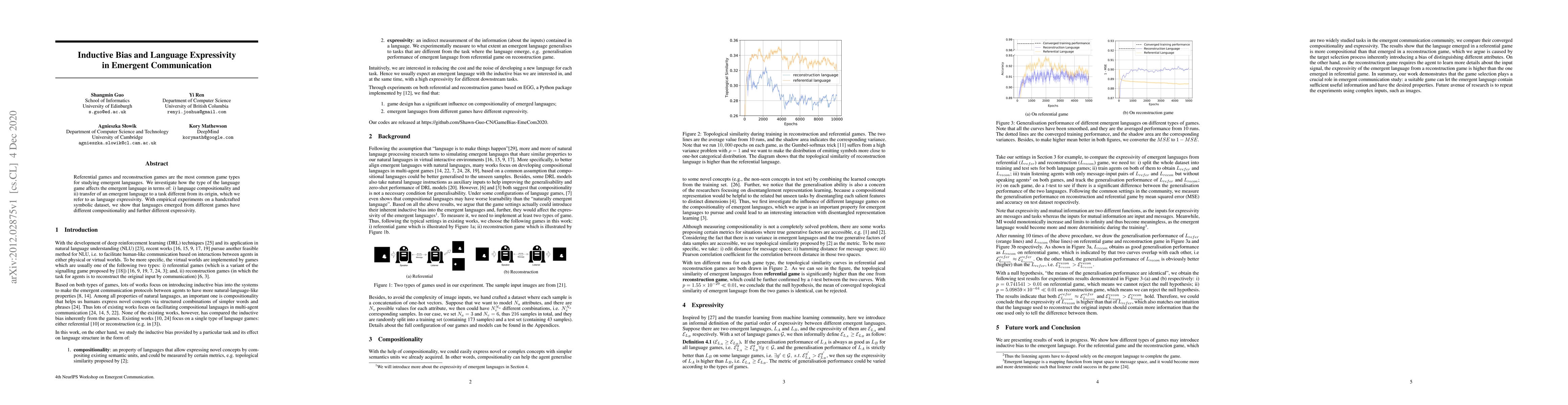 This paper explores how the type of language game influences the compositionality and expressivity of emergent languages, demonstrating through experiments that different games result in languages with varying compositional properties and different levels of adaptability to new tasks.
