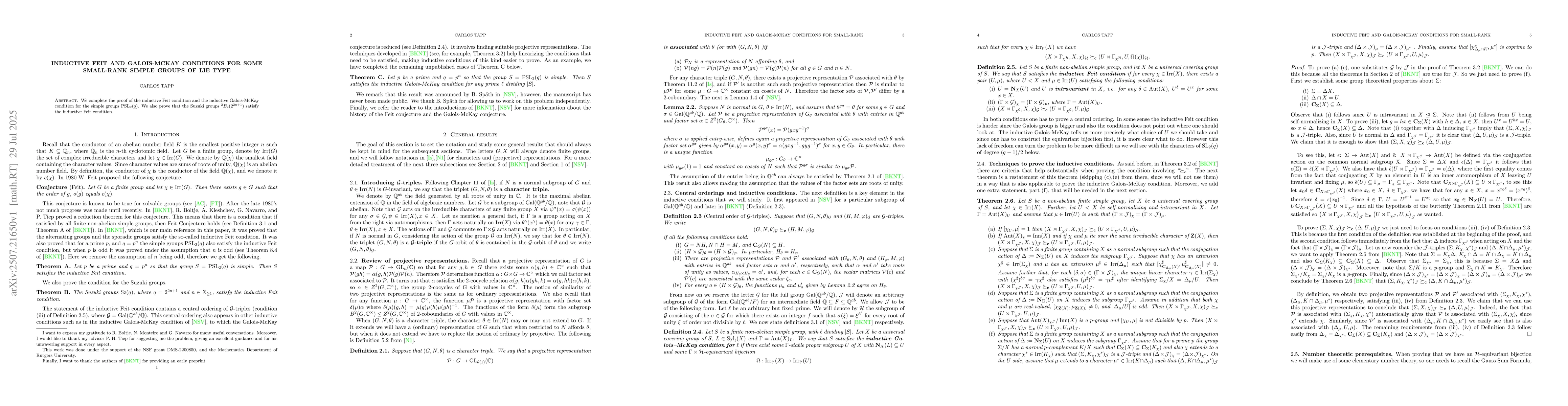 We complete the proof of the inductive Feit condition and the inductive Galois-McKay condition for the simple groups $\operatorname{PSL}_2(q)$. We also prove that the Suzuki groups $^{2}B_2(2^{2n+1})$ satisfy the inductive Feit condition.