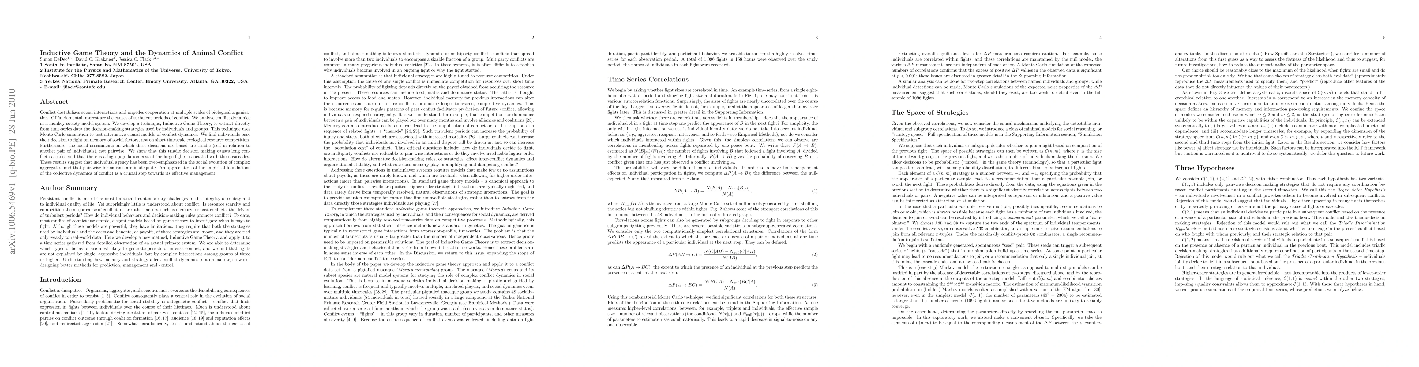 This paper develops Inductive Game Theory to analyze conflict dynamics in a monkey society, revealing that conflict decisions are based on triadic social assessments rather than short-term resource competition, leading to costly long conflict cascades. The findings suggest that individual agency has been overemphasized in social evolution models.