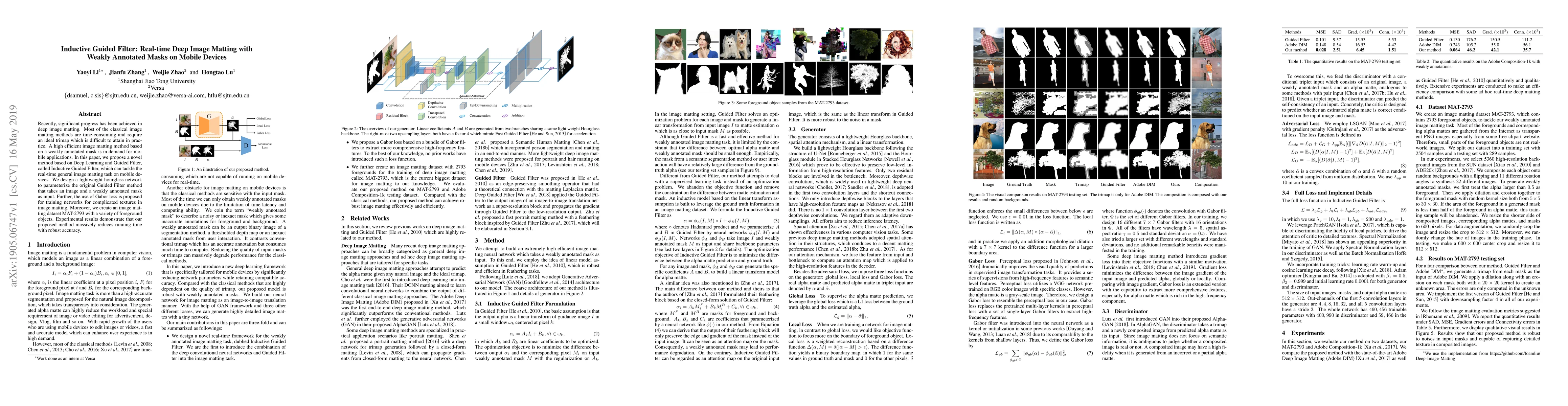 This paper proposes an efficient real-time deep image matting method called Inductive Guided Filter for mobile devices, utilizing a lightweight hourglass network and Gabor loss for handling complex textures. The method achieves significant speed improvements while maintaining robust accuracy, validated through a newly created dataset MAT-2793.
