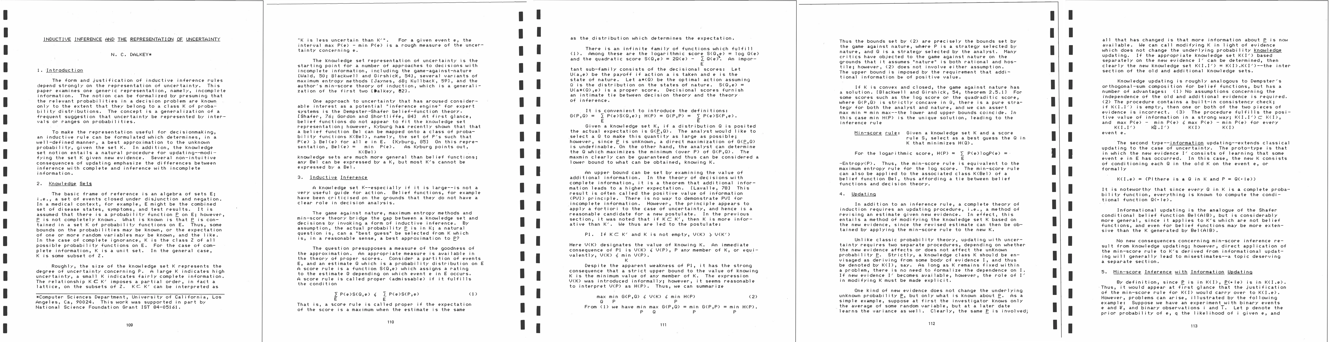 The form and justification of inductive inference rules depend strongly on the representation of uncertainty. This paper examines one generic representation, namely, incomplete information. The notion can be formalized by presuming that the relevant probabilities in a decision problem are known only to the extent that they belong to a class K of probability distributions. The concept is a generalization of a frequent suggestion that uncertainty be represented by intervals or ranges on probabilities. To make the representation useful for decision making, an inductive rule can be formulated which determines, in a well-defined manner, a best approximation to the unknown probability, given the set K. In addition, the knowledge set notion entails a natural procedure for updating -- modifying the set K given new evidence. Several non-intuitive consequences of updating emphasize the differences between inference with complete and inference with incomplete information.