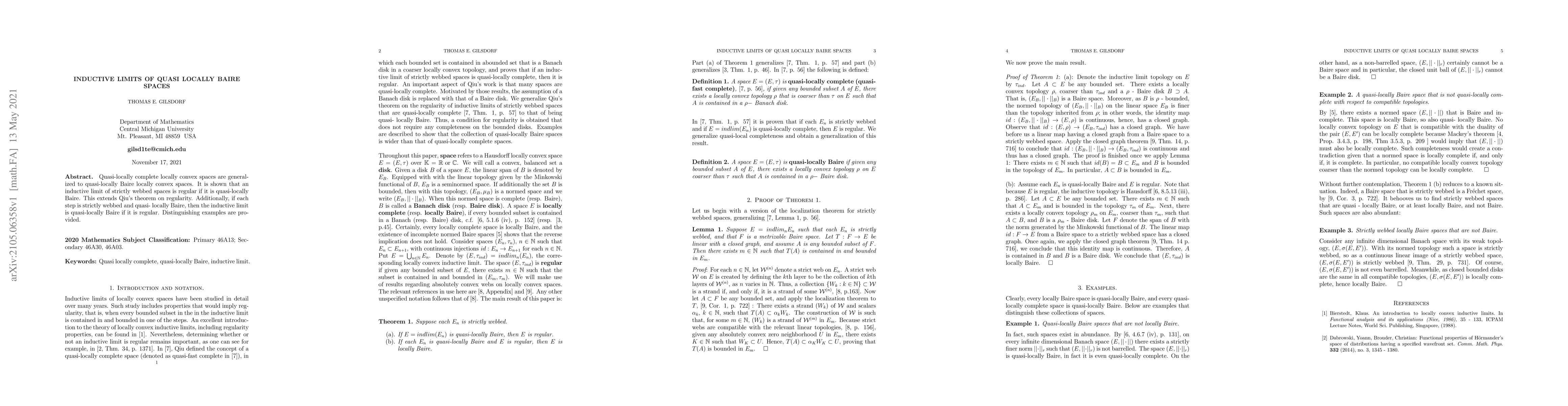 We study quasi-locally complete locally convex spaces and generalize this concept to quasi-locally Baire locally convex spaces. It is shown that an inductive limit of strictly webbed spaces is regular if it is quasi-locally Baire. This extends Qiu's theorem on regularity. Additionally, if each step is strictly webbed and quasi-locally Baire, then the inductive limit is quasi-locally Baire if it is regular. Relevant examples are provided.