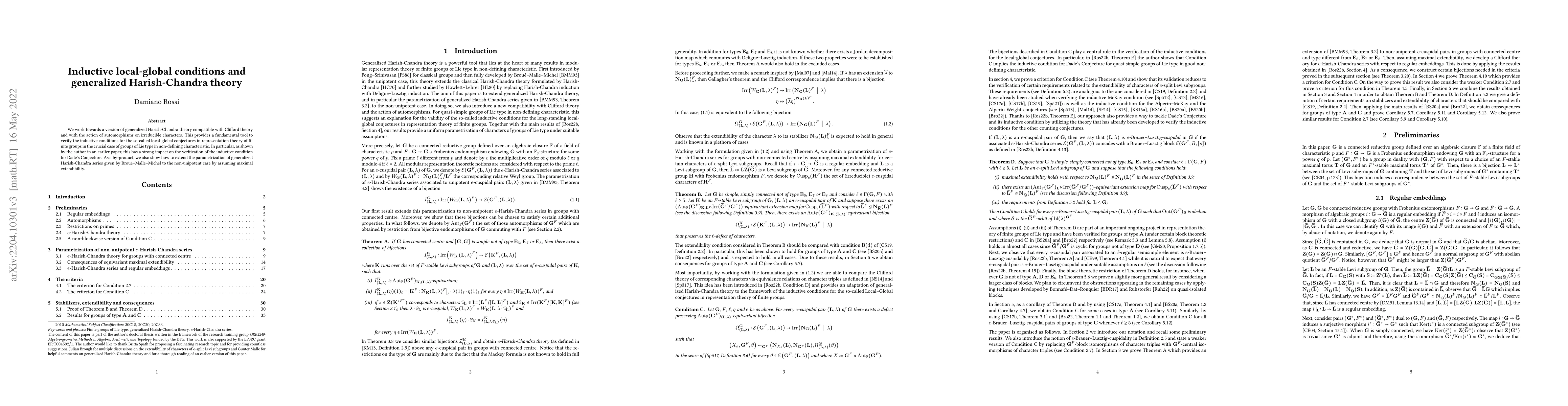 This paper develops a generalized Harish-Chandra theory that helps verify local-global conditions in representation theory of finite groups, with significant implications for understanding Dade's Conjecture and extending the parametrization of generalized Harish-Chandra series to non-unipotent cases.