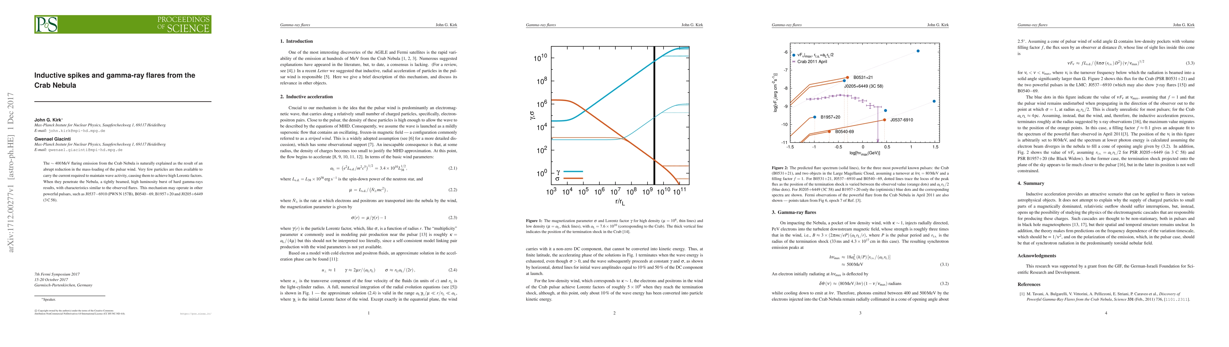 The Crab Nebula's ~400 MeV gamma-ray flares are attributed to a sudden decrease in the pulsar wind's mass-loading, leading to high-energy particle spikes and intense gamma-ray bursts. This mechanism may also explain flares in other powerful pulsars.