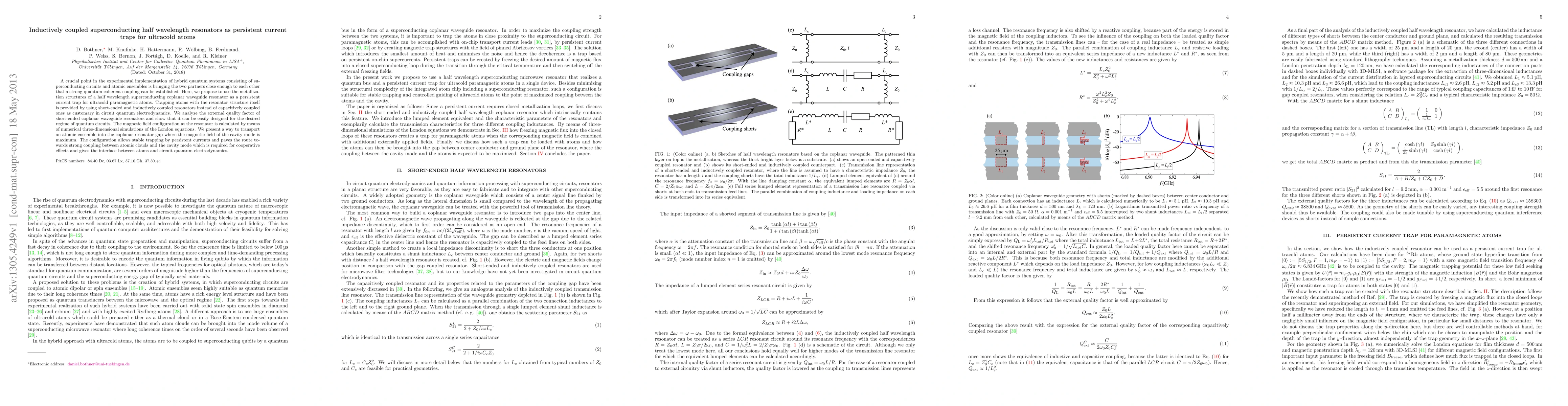 This paper proposes using inductively coupled superconducting half wavelength resonators as traps for ultracold paramagnetic atoms, leveraging their magnetic field to achieve stable atom trapping. The study provides numerical simulations to demonstrate the feasibility of strong quantum coupling between atomic ensembles and superconducting circuits.