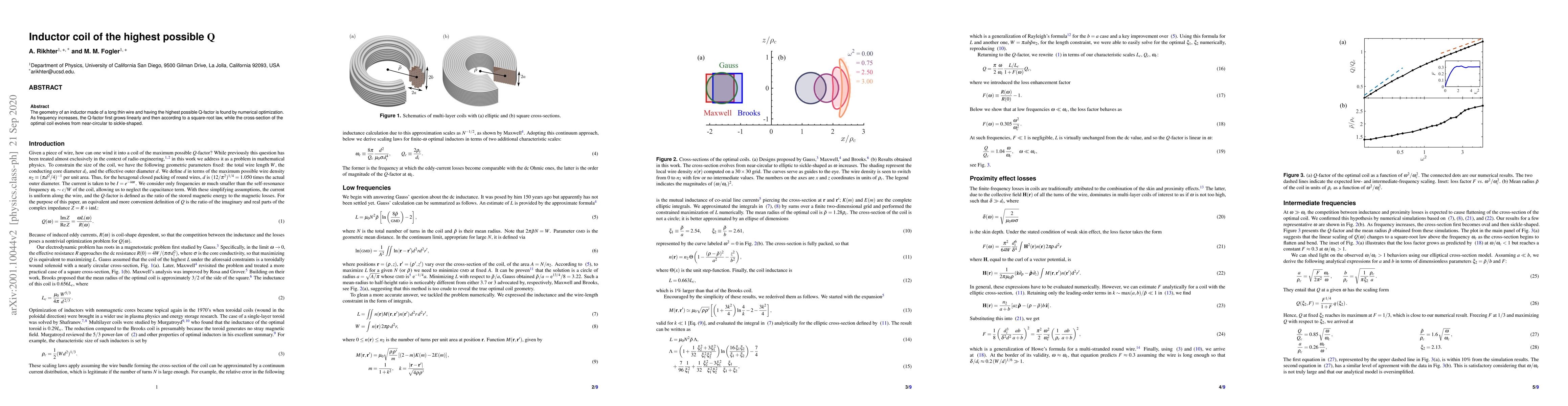 The geometry of an inductor made of a long thin wire and having the highest possible Q-factor is found by numerical optimization. As frequency increases, the Q-factor first grows linearly and then according to a square-root law, while the cross-section of the optimal coil evolves from near-circular to sickle-shaped.