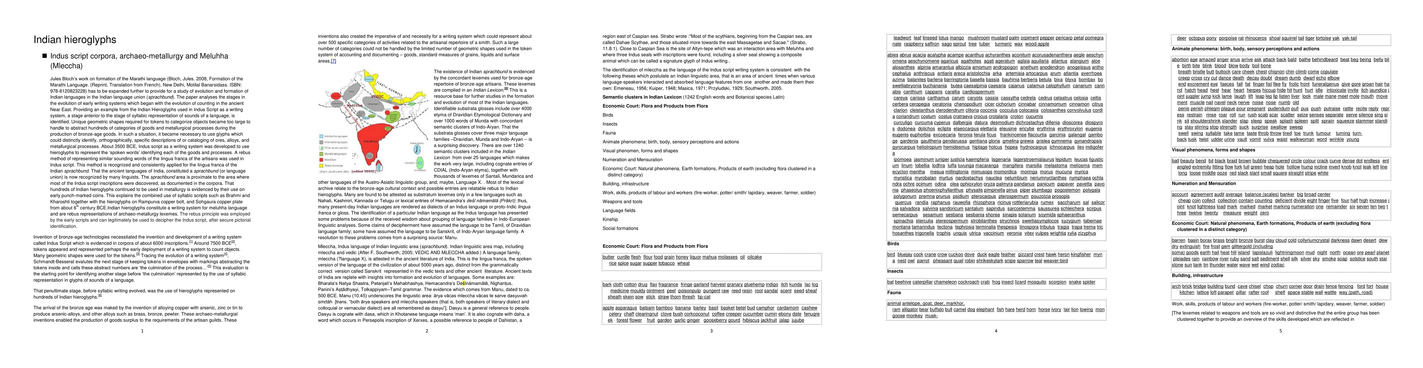 Jules Bloch's work on formation of the Marathi language has to be expanded further to provide for a study of evolution and formation of Indian languages in the Indian language union (sprachbund). The paper analyses the stages in the evolution of early writing systems which began with the evolution of counting in the ancient Near East. A stage anterior to the stage of syllabic representation of sounds of a language, is identified. Unique geometric shapes required for tokens to categorize objects became too large to handle to abstract hundreds of categories of goods and metallurgical processes during the production of bronze-age goods. About 3500 BCE, Indus script as a writing system was developed to use hieroglyphs to represent the 'spoken words' identifying each of the goods and processes. A rebus method of representing similar sounding words of the lingua franca of the artisans was used in Indus script. This method is recognized and consistently applied for the lingua franca of the Indian sprachbund. That the ancient languages of India, constituted a sprachbund (or language union) is now recognized by many linguists. The sprachbund area is proximate to the area where most of the Indus script inscriptions were discovered, as documented in the corpora. That hundreds of Indian hieroglyphs continued to be used in metallurgy is evidenced by their use on early punch-marked coins. This explains the combined use of syllabic scripts such as Brahmi and Kharoshti together with the hieroglyphs on Rampurva copper bolt, and Sohgaura copper plate from about 6th century BCE.Indian hieroglyphs constitute a writing system for meluhha language and are rebus representations of archaeo-metallurgy lexemes. The rebus principle was employed by the early scripts and can legitimately be used to decipher the Indus script, after secure pictorial identification.