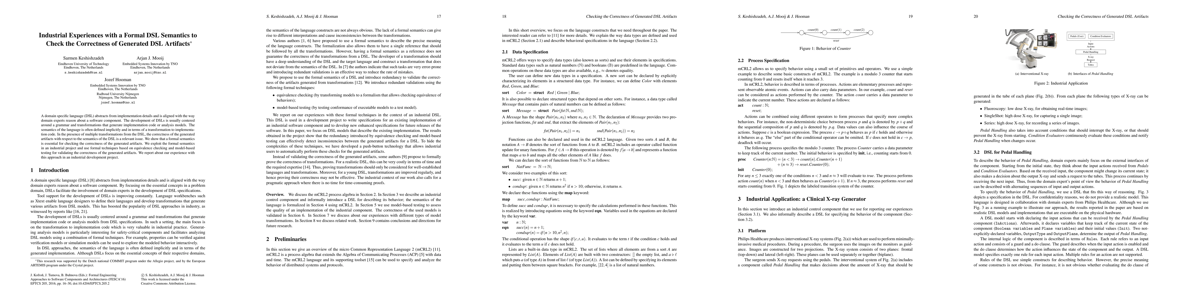 This paper discusses the importance of formal semantics in domain-specific languages (DSLs) for ensuring the correctness of generated artifacts. The authors present their industrial experience using formal techniques like equivalence checking and model-based testing to validate DSL artifacts in a practical project setting.