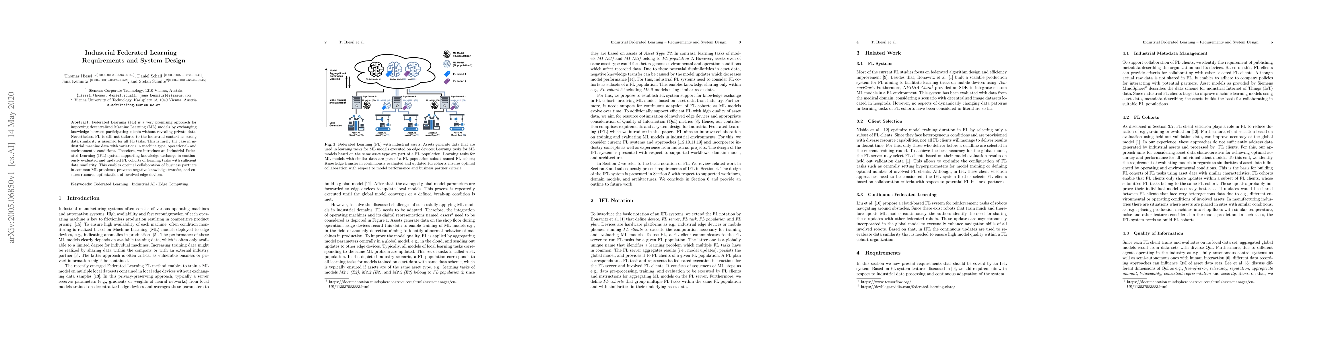 This paper proposes an Industrial Federated Learning (IFL) system to enhance decentralized machine learning in industrial contexts, addressing the lack of data similarity in industrial data. The IFL system supports knowledge exchange among diverse industrial machines, optimizing resource use and preventing negative knowledge transfer.