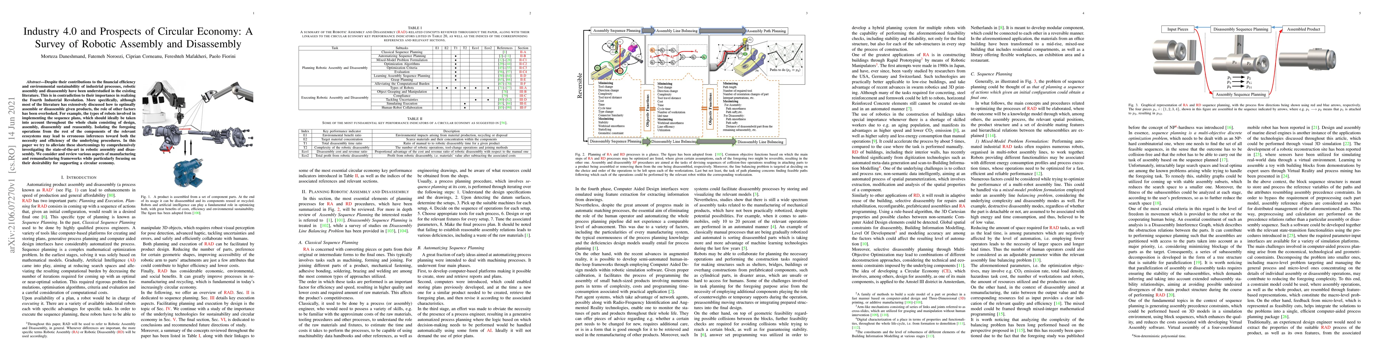 This paper surveys the current state-of-the-art in robotic assembly and disassembly, emphasizing their role in achieving financial efficiency and environmental sustainability within the context of Industry 4.0 and circular economy. It highlights the need to consider various factors, including robot types, to avoid erroneous conclusions about the efficiency of these processes.