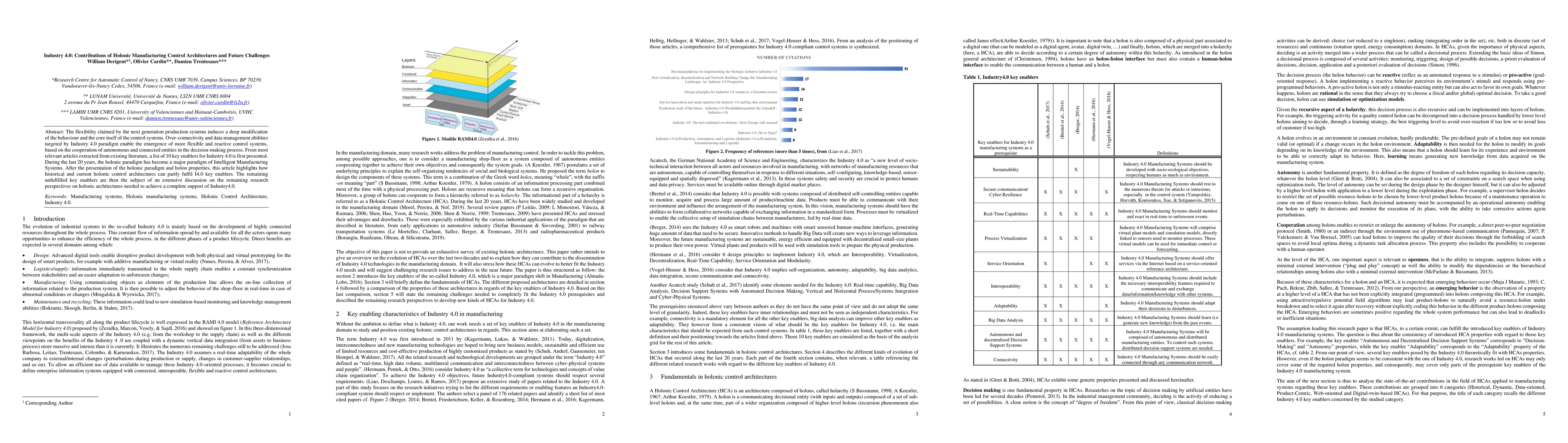 This research paper explores how holonic manufacturing control architectures contribute to Industry 4.0's key enablers, including flexibility, over-connectivity, and data management. It highlights the potential of holonic systems to support Industry 4.0 while also discussing future research directions.