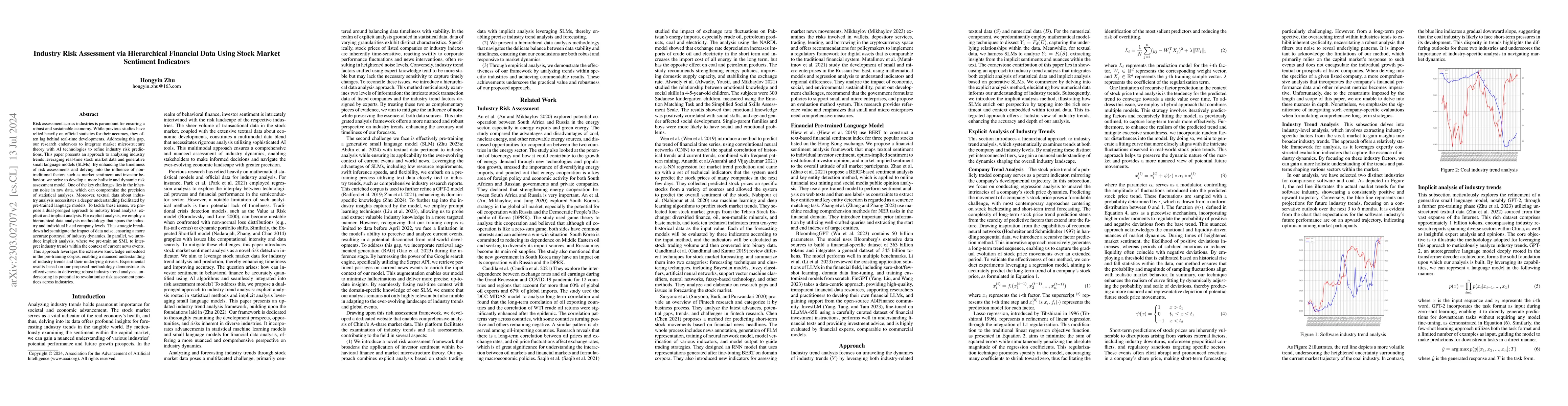Risk assessment across industries is paramount for ensuring a robust and sustainable economy. While previous studies have relied heavily on official statistics for their accuracy, they often lag behind real-time developments. Addressing this gap, our research endeavors to integrate market microstructure theory with AI technologies to refine industry risk predictions. This paper presents an approach to analyzing industry trends leveraging real-time stock market data and generative small language models (SLMs). By enhancing the timeliness of risk assessments and delving into the influence of non-traditional factors such as market sentiment and investor behavior, we strive to develop a more holistic and dynamic risk assessment model. One of the key challenges lies in the inherent noise in raw data, which can compromise the precision of statistical analyses. Moreover, textual data about industry analysis necessitates a deeper understanding facilitated by pre-trained language models. To tackle these issues, we propose a dual-pronged approach to industry trend analysis: explicit and implicit analysis. For explicit analysis, we employ a hierarchical data analysis methodology that spans the industry and individual listed company levels. This strategic breakdown helps mitigate the impact of data noise, ensuring a more accurate portrayal of industry dynamics. In parallel, we introduce implicit analysis, where we pre-train an SML to interpret industry trends within the context of current news events. This approach leverages the extensive knowledge embedded in the pre-training corpus, enabling a nuanced understanding of industry trends and their underlying drivers. Experimental results based on our proposed methodology demonstrate its effectiveness in delivering robust industry trend analyses, underscoring its potential to revolutionize risk assessment practices across industries.