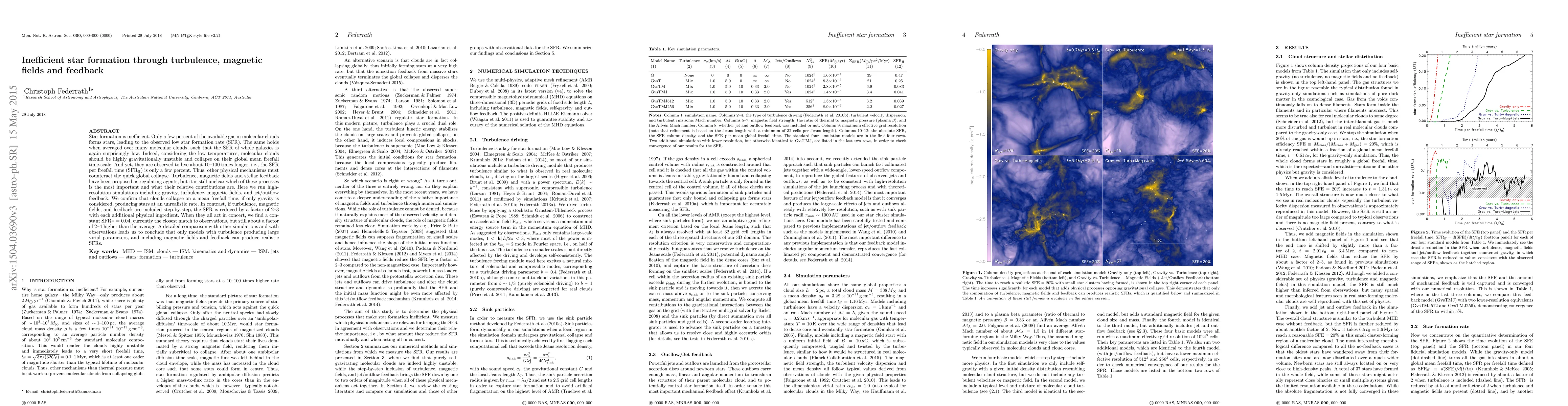 This paper investigates the inefficiency of star formation in molecular clouds, finding that only a few percent of the available gas forms stars despite the clouds' gravitational instability. The study uses high-resolution simulations to show that turbulence, magnetic fields, and stellar feedback collectively reduce the star formation rate, achieving a realistic but still slightly higher than observed star formation rate per freefall time.