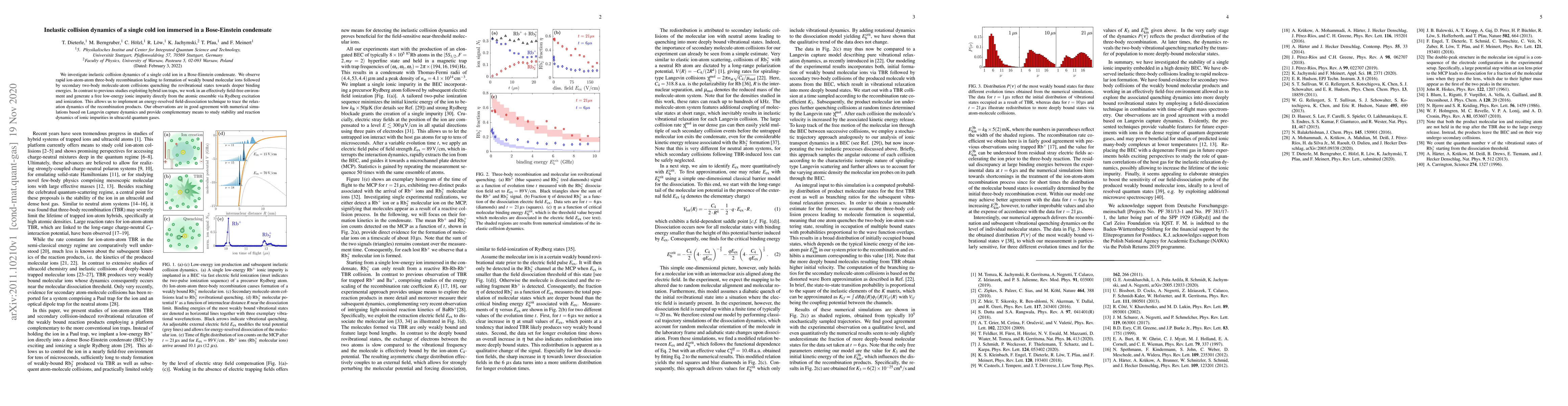 This paper investigates the inelastic collision dynamics of a cold ion within a Bose-Einstein condensate, observing rapid three-body recombination leading to weakly bound molecular ions and subsequent two-body collisions. The study employs a field-free environment and an energy-resolved technique to trace relaxation dynamics, aligning with numerical simulations.