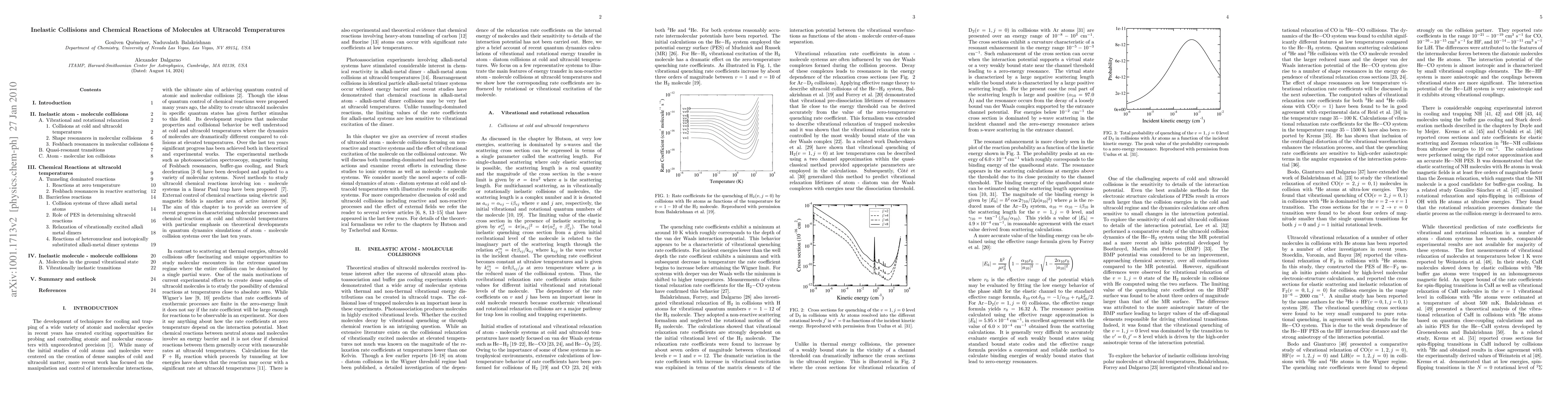 This paper reviews theoretical studies on inelastic collisions and chemical reactions in ultracold atomic and molecular systems, providing zero-temperature rate constants for various molecules. The focus is on understanding molecular behavior at cold temperatures.