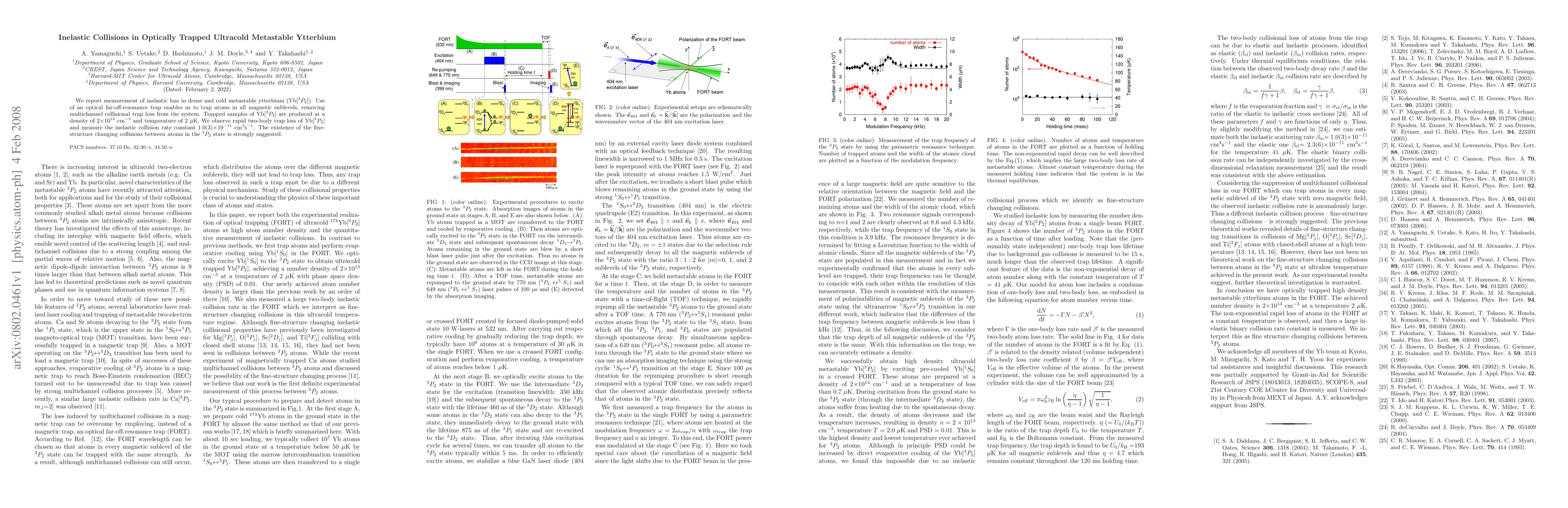 This paper measures inelastic loss in optically trapped ultracold metastable ytterbium atoms, observing rapid two-body trap loss and determining an inelastic collision rate constant of 1.0(3)$\times10^{-11}$ cm$^3$s$^{-1}$, indicating fine-structure changing collisions in the $^3P_2$ state.