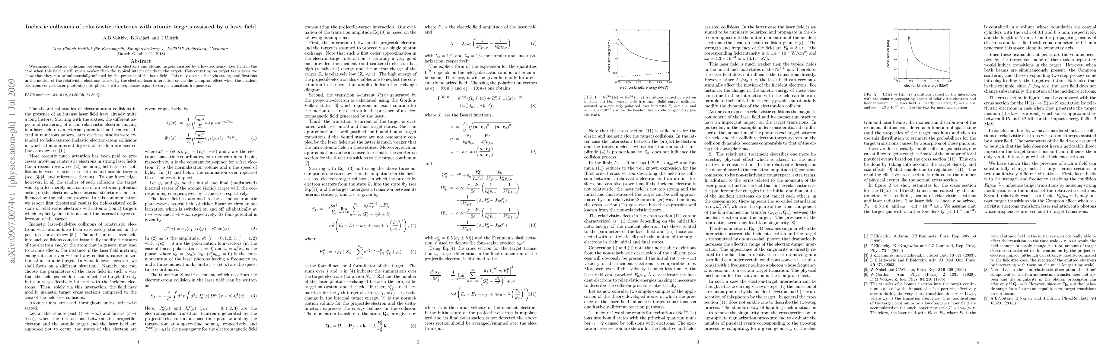 Summary: This study investigates inelastic collisions between relativistic electrons and atomic targets influenced by a weak laser field, demonstrating significant effects on target transitions either through electron-laser interactions or via the Compton effect, where electrons convert laser photons into photons matching target transition frequencies.