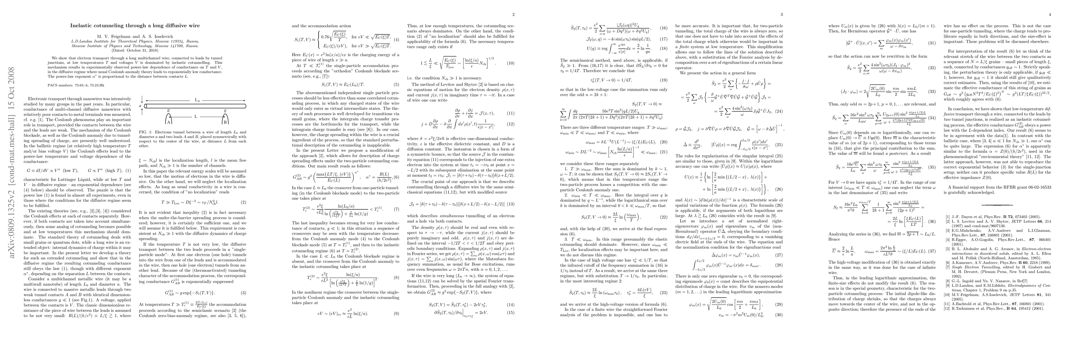 We show that electron transport through a long multichannel wire, connected to leads by tunnel junctions, at low temperatures and voltages is dominated by inelastic cotunnelling. This mechanism results in experimentally observed power-law dependence of conductance on temperature and voltage, in the diffusive regime where usual Coulomb anomaly theory leads to exponentially low conductance. The power-law exponent is proportional to the distance between contacts.