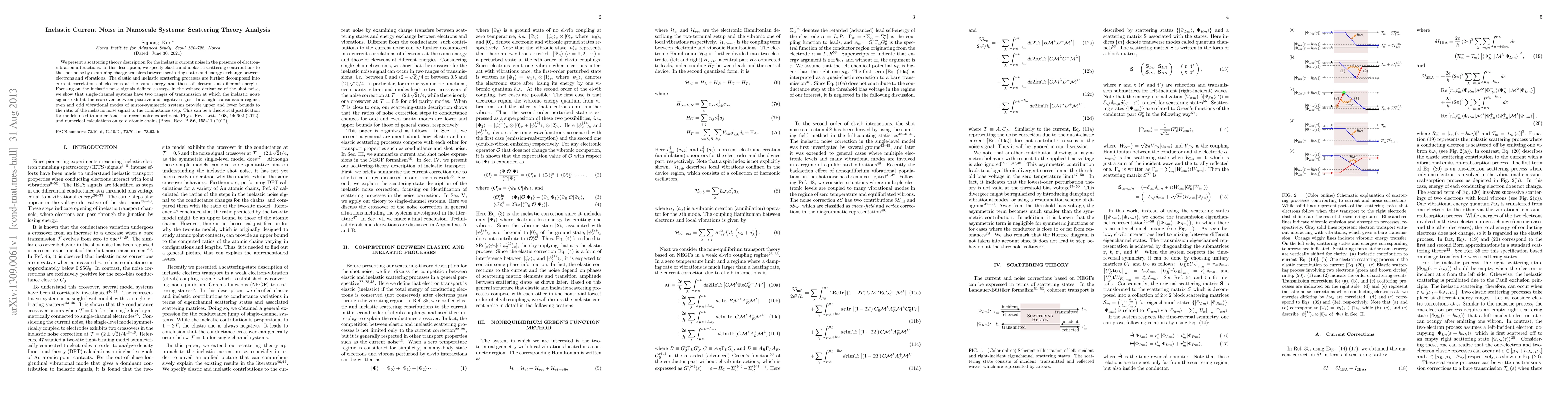 This paper develops a scattering theory framework for analyzing inelastic current noise in nanoscale systems, focusing on electron-vibration interactions. It identifies elastic and inelastic scattering contributions to shot noise and demonstrates that single-channel systems exhibit crossovers in inelastic noise signals, providing a theoretical basis for understanding recent experimental noise observations and numerical simulations.
