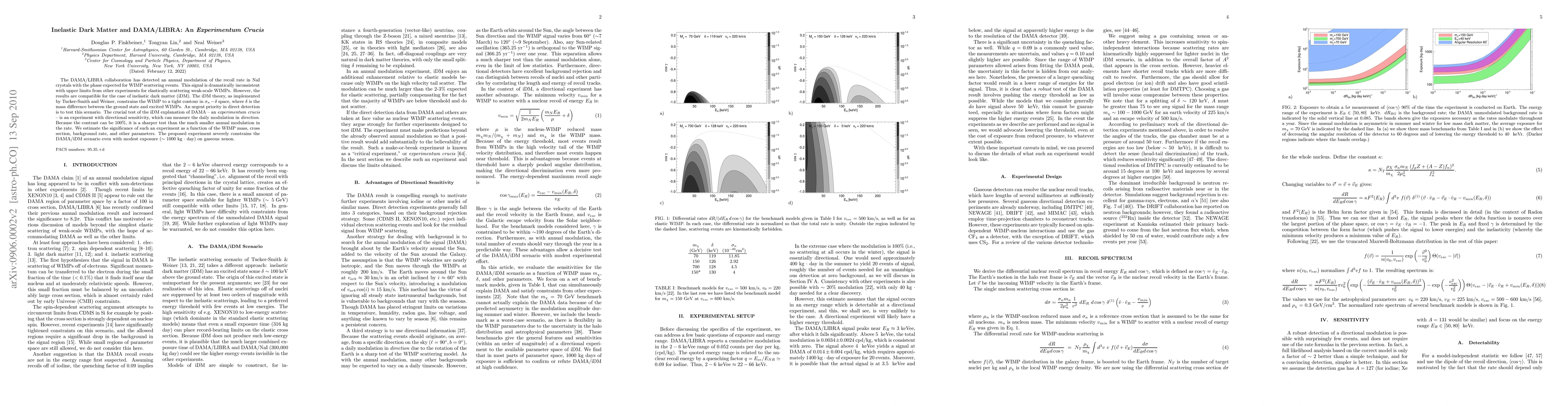The DAMA/LIBRA collaboration detected an annual modulation in recoil rate consistent with inelastic dark matter (iDM) theory, which is incompatible with elastic WIMP scattering upper limits. A directional sensitivity experiment could test this scenario, severely constraining it even with modest exposure.