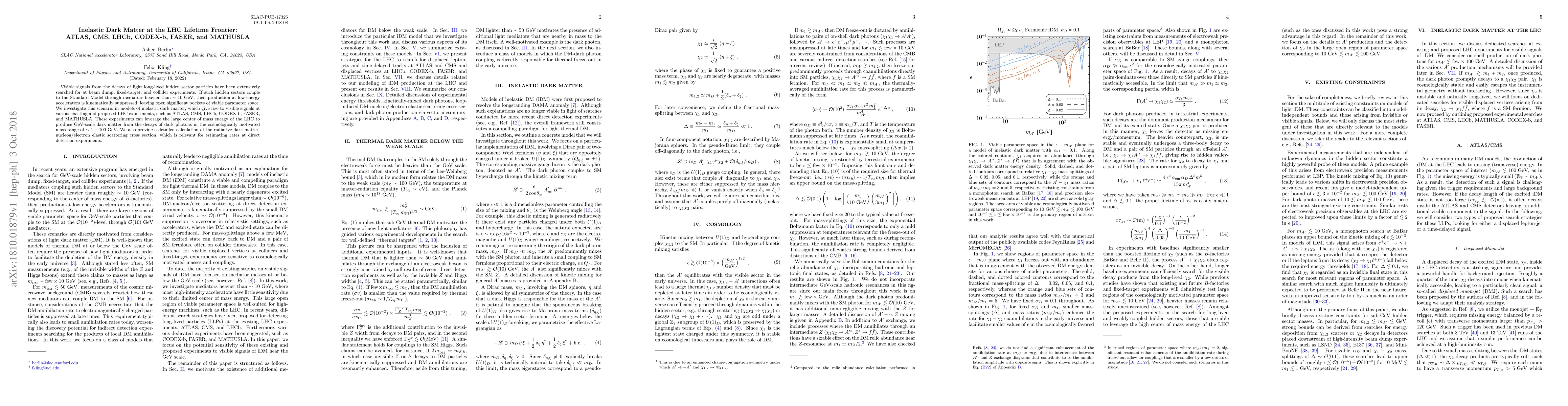 This paper explores inelastic dark matter models where hidden sector particles decay into visible signals, focusing on the potential of LHC experiments like ATLAS, CMS, LHCb, CODEX-b, FASER, and MATHUSLA to detect GeV-scale dark matter produced from dark photon decays. It also calculates the elastic scattering cross section for dark matter interactions with nucleons and electrons, relevant for direct detection experiments.
