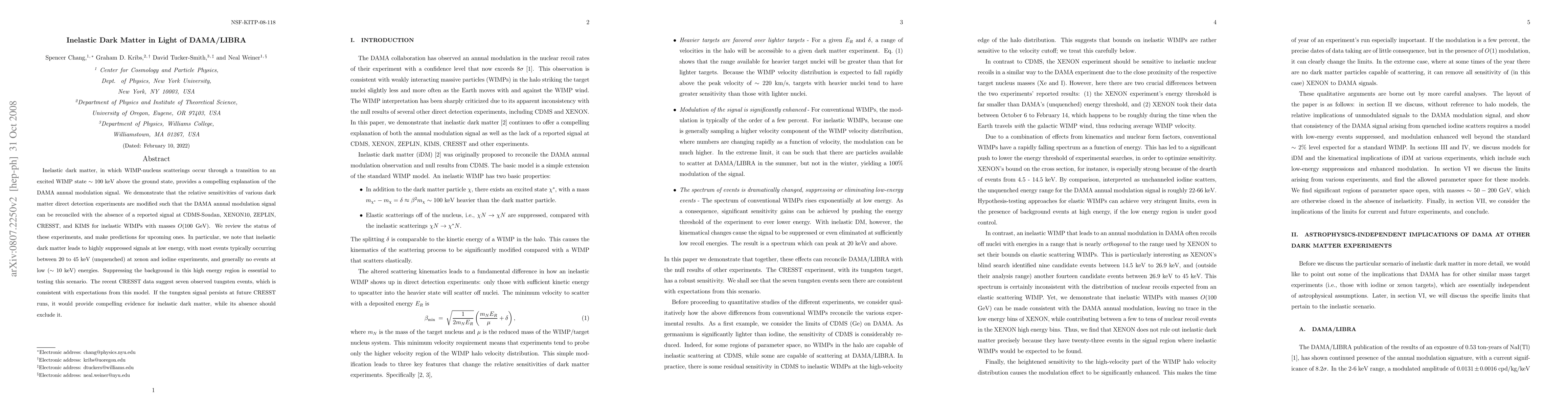 This paper explores the inelastic dark matter model where WIMP-nucleus scattering transitions to an excited WIMP state, explaining the DAMA annual modulation signal. It reconciles DAMA's findings with null results from other experiments by predicting suppressed signals in low-energy regions, with most events occurring between 20 to 45 keV.